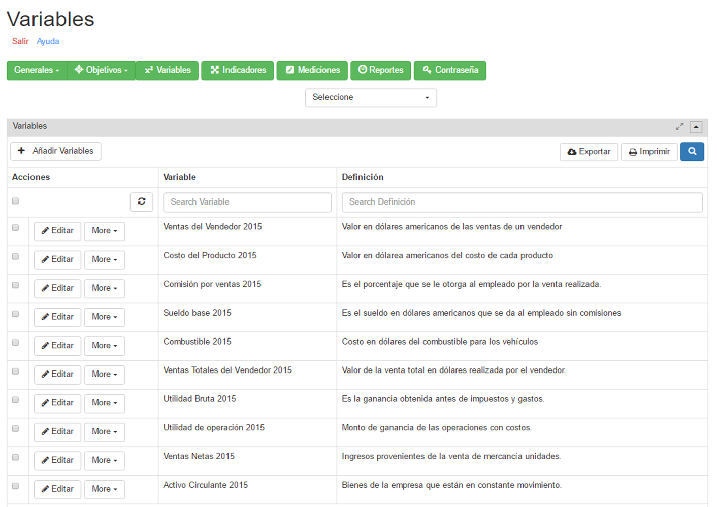 Proporciona a los ejecutivos un amplio marco que traduce la Visión y Estrategia de una empresa en un conjunto coherente de indicadores de actuación.